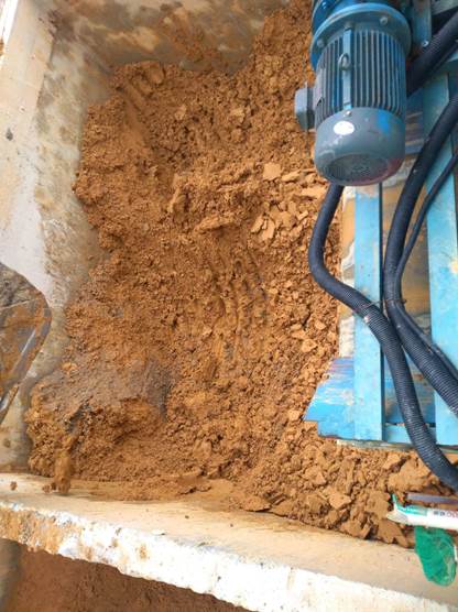 由于泥浆内含有颗粒稍大的砂石或带有棱角的碎岩,易对滤布产生破坏,所以对现场待处理的泥浆要先进行筛沙机过滤,将大块的杂物先分离出来,筛分砂石后的泥浆统一储存,等待下一道工序。