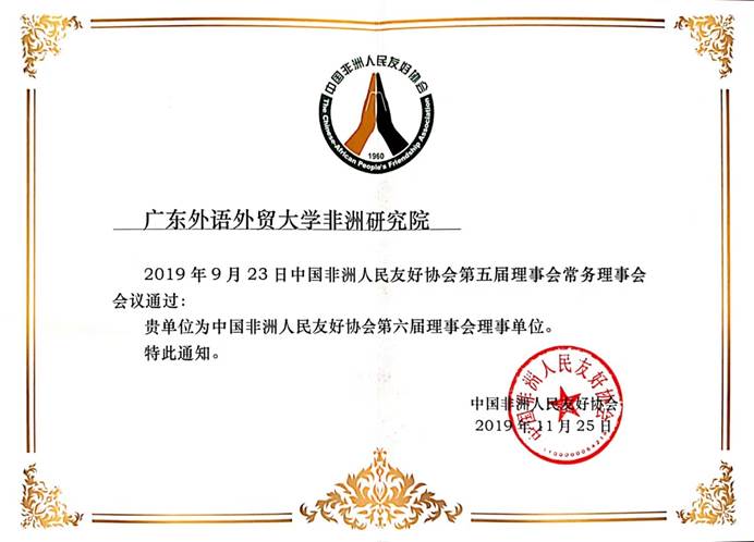 同时,非洲研究院被推选为中国非洲人民友好协会第六届理事会理事单位,张华荣名誉院长被推选为副会长,傅朗院长被推选为个人理事。