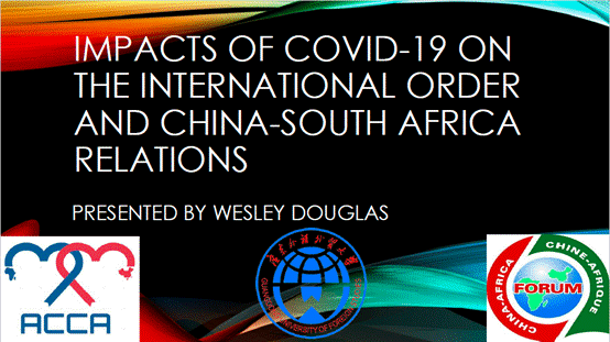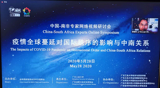 受中共中央对外联络部的委托,新兴经济体研究会与广东工业大学5月28日下午联合承办以“疫情全球蔓延对国际秩序的影响与中南关系”为主题的中国-南非专家网络视频研讨会。本次全英视频云端会议主办单位为金砖国家智库合作中方理事会,承办单位为广东工业大学、广东省新兴经济体研究会。广东工业大学金砖国家研究中心,广东工业大学经济与贸易学院,广东财经大学国民经济研究中心、广东外语外贸大学国际经济贸易研究中心、广东省对外经济贸易大学校友会参加具体协办。中共中央对外联络部研究室主任、金砖国家智库合作中方理事会秘书长栾建章博士出席会议,广东工业大学党委常委、副校长栾天罡教授出席会议并致辞,来自南非国际关系委员会、南非黑人商会、中非合作协会、非中人民友好协会、茨瓦内理工大学创新经济研究所、罗德斯大学、夸祖鲁纳塔尔大学以及澳大利亚纽斯卡尔大学等国外机构,中共中央对外联络部研究室、中国社会科学院世界经济与政治研究所、中国科学技术发展战略研究院、北京大学、上海大学、浙江师范大学非洲研究院、广东外语外贸大学非洲研究院、广东外语外贸大学国际经贸研究中心、上海对外经贸大学国际发展合作研究院、暨南大学、广东工业大学等单位的相关领导、专家、学者共计51人出席研讨会。