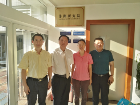 会议结束后,黄俊民、刘继森、曾驭然、王刚等在非洲研究院办公室门前合影留念。