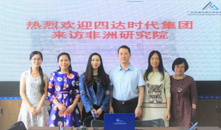 2018年3月28日上午,北京四达时代集团来访广东外语外贸大学非洲研究院,双方进行了友好交流。访问由非洲研究院常务副院长刘继森接待并主持,非洲研究院院长助理霍江涛、非洲研究院中国文化品牌全球研究中心执行主任曾驭然、高级研究员吴易明参加了接待。