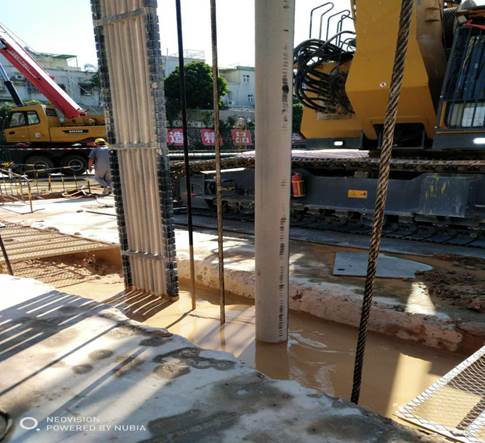 泥浆是用膨润土和水按照一定比例搅拌而成,为调整其PH值和增加其粘度一般会外加适量碱和纤维素。在地下连续墙和钻孔桩成槽、孔作业中,泥浆主要有冷却、润滑钻具的作用,另一方面通过泥水平衡和在槽、孔壁上形成的泥皮可以有效地防止槽、孔壁坍塌。同时因其比重较大,可以致使作业产生的岩屑悬浮,保证槽、孔清洁。