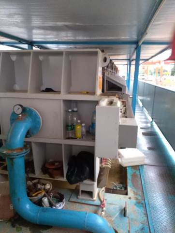 泥浆进满每个滤室之后,保压压缩,通过压缩,将泥浆里的水分压出,通过平台侧面出水口排出。