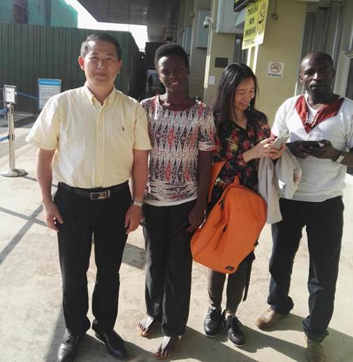 12月25日考察组乘飞机从乌干达前往南非首都约翰内斯堡。临走前,临时导游埃德蒙和他的女友EDINAH到机场为我们送行。