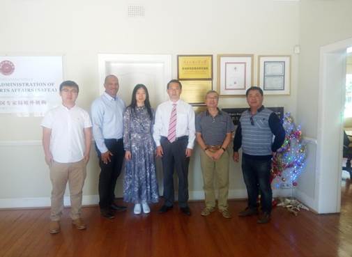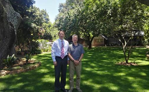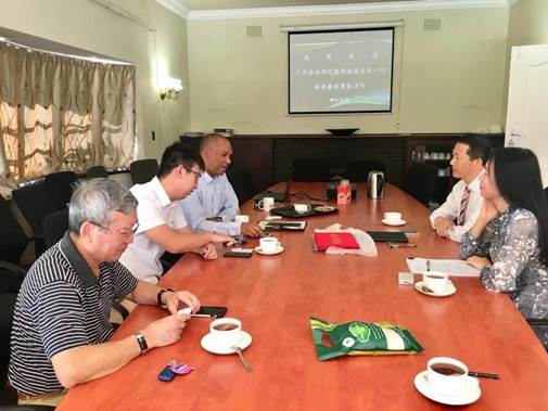 12月26日上午,考察组拜访了“一带一路”非洲研究联盟副理事长单位南部非洲专家学者工程师联合会,与陈家基秘书长、中非青年会秘书长WESLEY、中国电建南非办事处总经理解颜铭、南非水稻种植研究开发公司总经理苏志伟就中南非产能合作、联合研究、农业合作等主题进行了会谈。