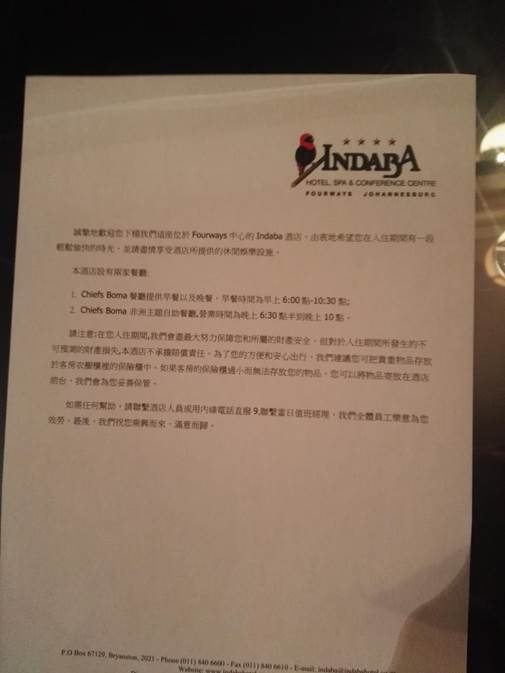 在约翰内斯堡可以处处感受到南非人与自然的和谐。我们入住的INDABA酒店,边上就是一个湿地公园,酒店的屋顶与大自然融为一体,飞到餐桌边的织巣鸟优雅地欣赏着餐桌上的美食。