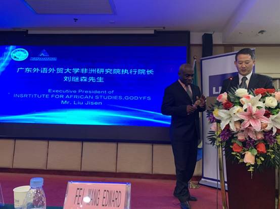 4月19日,由坦桑尼亚工农商商会、坦桑尼亚驻华商会主办,由坦桑尼亚驻华使馆和广东外语外贸大学非洲研究院协办的中国-坦桑尼亚投资论坛在广州东方国际饭店会议中心举行。坦桑尼亚驻华大使凯鲁基(Mbelwa Kairuki)先生,坦桑尼亚工农商商会主席代表弗朗西斯·路克瓦罗(Francis Lukwaro)先生,前投资局局长彼特(Raymond Peter Mbilinyi)先生,坦桑尼亚工农商商会驻中国会长约翰(John)先生,广东外语外贸大学非洲研究院执行院长刘继森教授以及中坦两国企业家、商人150余人出席了本次论坛。