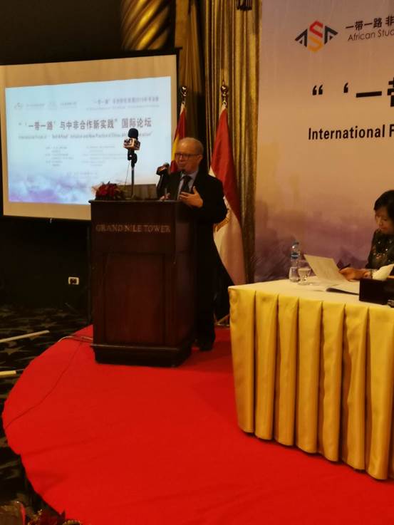 在主题演讲环节,各国专家学者围绕中非产业促进、埃及经济与中非合作、“一带一路”背景下的中埃关系、非洲工业化进程与职业技术教育发展、“一带一路”合作新征程等议题发表了真知灼见。