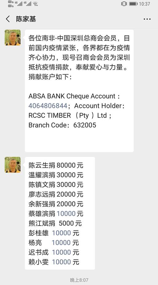 南非深圳总商会面对国内疫情紧张,商会会员积极为深圳抵抗疫情捐款,奉献爱心与力量。