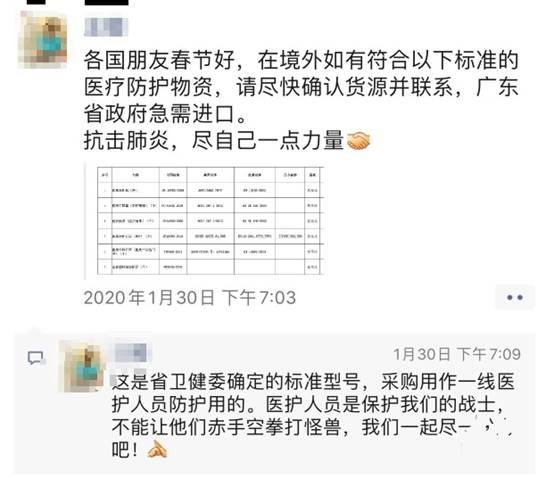 “各国朋友春节好,在境外如有符合以下标准的医疗防护物资,请尽快确认货源并联系,广东省政府急需进口。抗击疫情,尽自己的一点力量。”广东非洲投资贸易联盟副主席王毅,是一名在安哥拉的南海企业家,他在朋友圈向全球的好友发出上述信息。