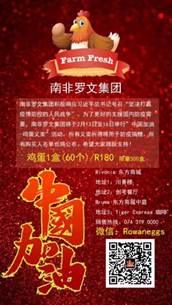 义卖活动于2月13-16日在南非约翰内斯堡雷沃尼亚的地方商城和布鲁玛的东方商城进行。此举得到南非华人华侨的热烈支持与响应,纷纷解囊购买,以实际行动为武汉加油。仅仅13号一天,就售出200盒左右鸡蛋。