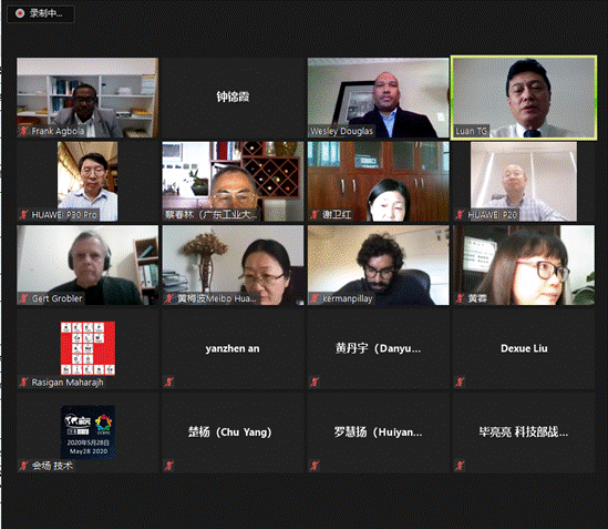 受中共中央对外联络部的委托,新兴经济体研究会与广东工业大学5月28日下午联合承办以“疫情全球蔓延对国际秩序的影响与中南关系”为主题的中国-南非专家网络视频研讨会。本次全英视频云端会议主办单位为金砖国家智库合作中方理事会,承办单位为广东工业大学、广东省新兴经济体研究会。广东工业大学金砖国家研究中心,广东工业大学经济与贸易学院,广东财经大学国民经济研究中心、广东外语外贸大学国际经济贸易研究中心、广东省对外经济贸易大学校友会参加具体协办。中共中央对外联络部研究室主任、金砖国家智库合作中方理事会秘书长栾建章博士出席会议,广东工业大学党委常委、副校长栾天罡教授出席会议并致辞,来自南非国际关系委员会、南非黑人商会、中非合作协会、非中人民友好协会、茨瓦内理工大学创新经济研究所、罗德斯大学、夸祖鲁纳塔尔大学以及澳大利亚纽斯卡尔大学等国外机构,中共中央对外联络部研究室、中国社会科学院世界经济与政治研究所、中国科学技术发展战略研究院、北京大学、上海大学、浙江师范大学非洲研究院、广东外语外贸大学非洲研究院、广东外语外贸大学国际经贸研究中心、上海对外经贸大学国际发展合作研究院、暨南大学、广东工业大学等单位的相关领导、专家、学者共计51人出席研讨会。