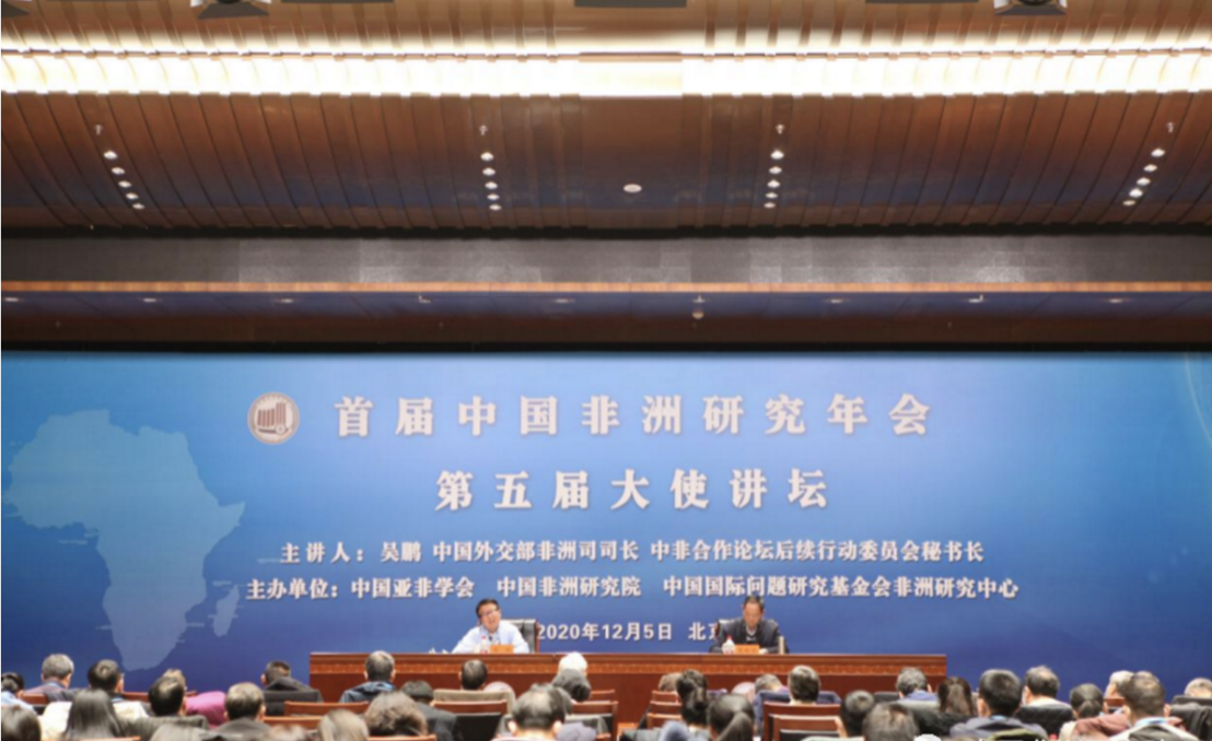 2020年12月5日,首届中国非洲研究年会和中国非洲研究院第五届大使讲坛在北京举行。此次会议由中国亚非学会、中国非洲研究院和中国国际问题研究基金会非洲研究中心联合举办,会议分为三个阶段,第一个阶段为首届中国非洲研究年会开幕式及中国非洲研究院第五届大使讲坛,第二个时段为中国非洲研究年会专家论坛,第三阶段为大会总结和闭幕式。执行院长刘继森应邀出席了首届中国非洲研究年会并在第三分会场 中非共建“一带一路”与减贫合作上做了题为“中国减贫经验在非洲的传播与中非产能合作机制设计”的发言。