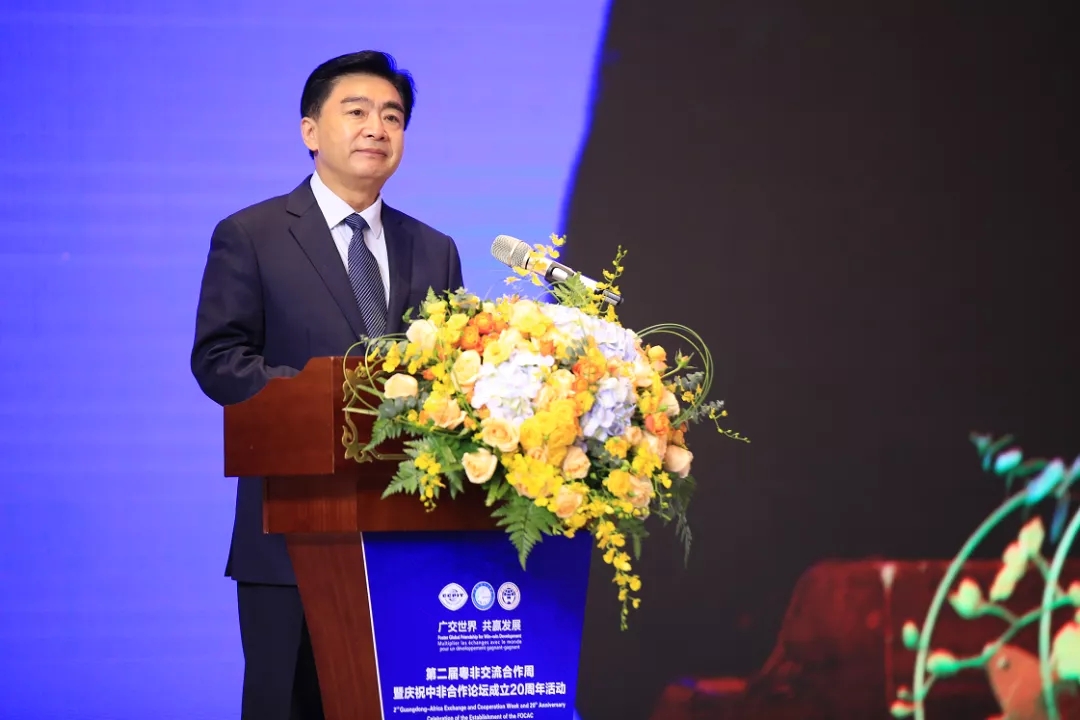 近日,由广东公共外交协会、广东省贸促会、广东外语外贸大学联合主办的第二届粤非交流合作周暨庆祝中非合作论坛成立20周年活动在广州举办。省政协领导、省直有关单位领导和8个非洲国家驻穗领事馆官员,以及来自各界朋友和企业代表等300多人出席了开幕式。会上,广东省政协主席、广东公共外交协会会长王荣出席开幕式并作主旨演讲,全国政协副秘书长、中非友好小组副组长郭军,外交部原副部长吉佩定,非洲驻穗领团团长、马里驻穗总领事加库、广东外语外贸大学校书记隋广军、广东省贸促会会长方利旭等出席并致辞。