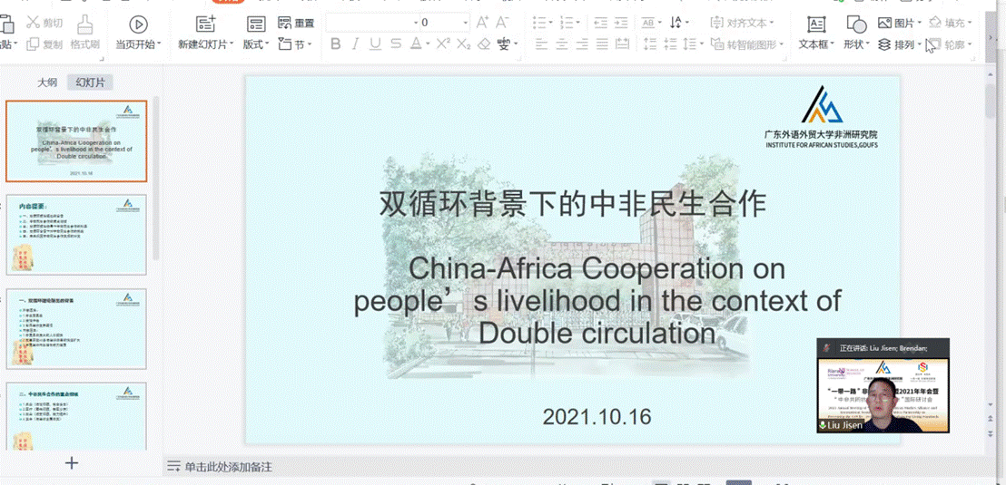 我院刘继森执行院长以“双循环背景下的中非民生合作”为题,认为中非经贸合作是一个双赢合作,一方面,可以使中国非洲两个市场相互促进,两种市场资源可以得到合理配置;另一方面,中国有技术有产业但国内资源有限,非洲缺乏技术缺乏产业但资源丰富,中非合作可以使这一矛盾得到解决。