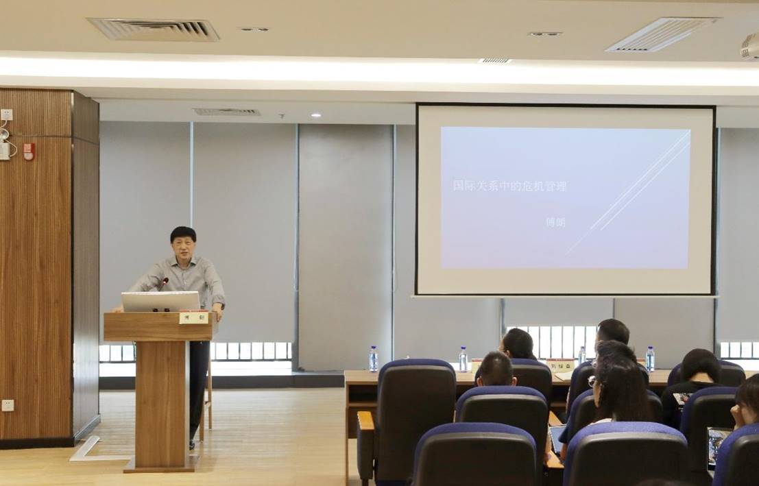 傅朗院长从理论知识出发,阐述了处理国际关系危机的三个基本原则,一是“三个及时”,即及时了解情况、及时妥善处理、及时把控舆情,要求掌握第一手材料,做到“先救火”与“先发声”;二是“三个意识”,即忧患意识、预案意识、轻重意识,强调把握节点,抓住主要矛盾;三是“三个掌握”,即掌握政策、掌握分寸、掌握方法,控制方向与尺度,敢于担当与作为。其次,傅朗院长结合自身工作经验与经典案例,介绍了应对国际关系危机的方式与方法。最后,傅朗对工作体会进行了总结,提出要透过现象看本质,勇于面对困难,学会谋篇布局,提醒同学们将功夫落在平时,注重细节,通过提升实力来增强自信,鼓励同学们培养国际视野、创新思维、执行能力与亲和力。