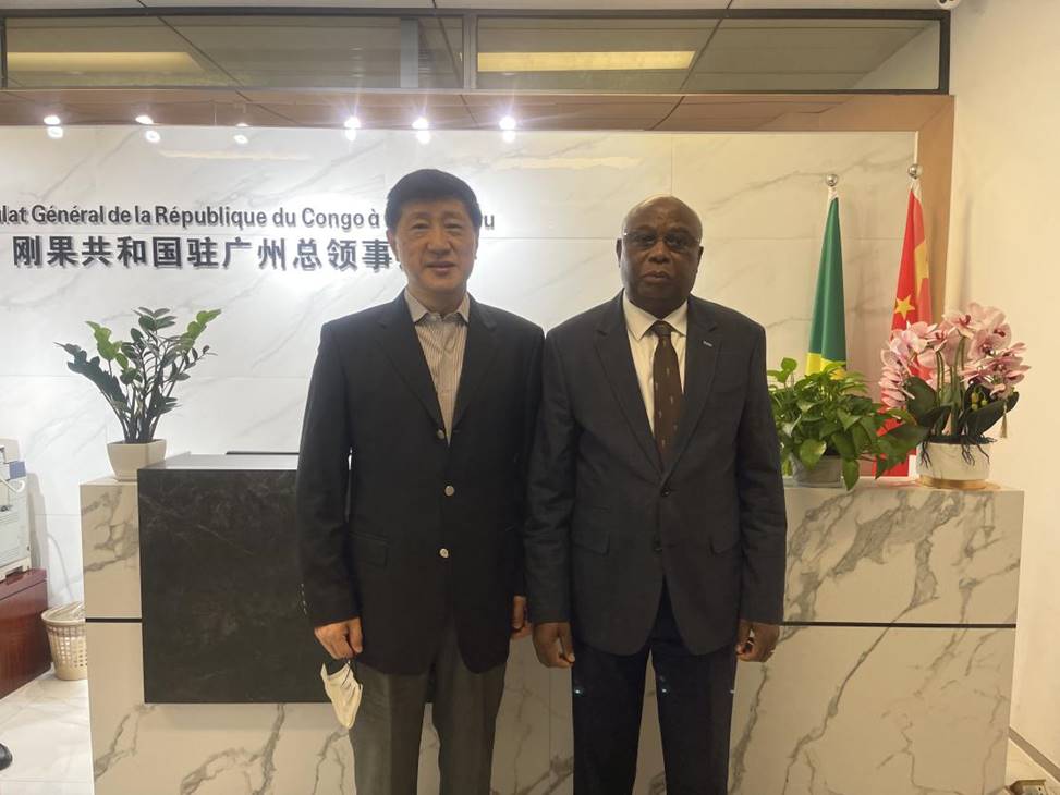 5月13日下午,广东公共外交协会常务副会长、广东外语外贸大学非洲研究院院长傅朗拜访了非洲领团团长、刚果共和国驻穗总领事馆总领事艾博罗·埃曼纽尔(Ebolo Emmanuel),同行的还有非洲研究院执行院长刘继森,西语学院法语翻译陈湘蓉老师。