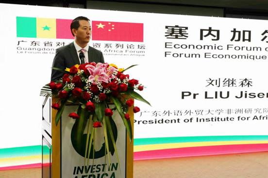 On November 17th, Economic Forum of Senegal in Guangzhou was held in New Pearl River International Hotel. It was co-hosted by Senegalese Consulate General in Guangzhou, Africa Guangdong Business Association, Guangdong University of Foreign Studies. Prof. Liu Jisen, Executive President of IAS, Huo Jiangtao, Prof. Liu's assistant, and Ji Fei, senor researcher of IAS, attended the forum.