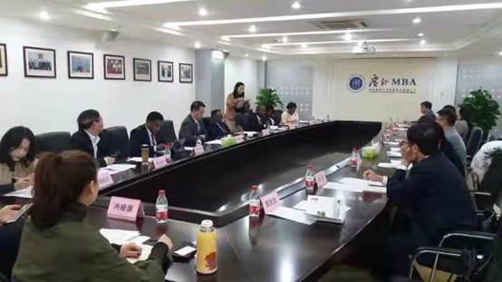 On November 29th, Seminar on Entry of Chinese Educational Equipment and Huibei Folk Songs into Africa was held in Room 402, MBA Education Center, GDUFS. Attending the seminar were Adam Yousif, Consul General of Consulate General of the Republic of Sudan in Guangzhou, Kadidiatou KONATE, counselor of Consulate General of the Republic of Mali in Guangzhou, Tesfaye Messele, consul of Consulate General of Ethiopia in Guangzhou, Rougui Mbaye, deputy consul of Consulate General of Senegal in Guangzhou, Angel Lwatula, trade consul of Consulate General of the Republic of Zambia in Guangzhou, authority of Hubei Provincial Educational Equipment Association, authority of Guangdong Provincial Educational Equipment Association, authority of Shenzhen Municipal Educational Equipment Association, authority of Jiangsu Provincial Educational Equipment Association, authority of Fujian Provincial Educational Equipment Association, authority of Hubei Musician Association, authority of Jingzhou Municipal Cultural Bureau, authority of Huanggang Municipal Cultural Bureau. Prof. Liu Jisen, Executive President of IAS, GDUFS, and director of Research Center for International Economic and Trade, hosted the seminar.
