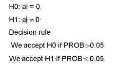 If the two probabilities are greater than 0.05 we accept H0 If the two probabilities are less than 0.05 we accept H1