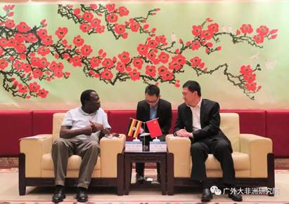 Sui Guangjun a tenu à exprimer ses bienvenues chaleureuses pour la première visite de M. Charles. Il a présenté brièvement les collègues qui ont assisté à la réunion, ainsi que l’histoire et le développement de GDUFS. D’après lui, suite à la promotion de l’internationalisation, les échanges sino-africaines sont devenu de plus en plus étroits. Notre université a établi des disciplines axés sur l’internationalisation, et attaché de l’importance à la formation des talents. Sui a souligné que les deux parties pourrait non seulement renforcer les échanges académiques et les visites mutuelles entre des enseignants et des étudiants et établir des relations de coopération dans le domaine de l’enseignement des langues, mais aussi intensifier la coopération et la recherche dans les domaines, tels que la recherche sur l’Afrique, la coopération scientifique, le commerce, la gestion, la science humaine et sociale et etc.