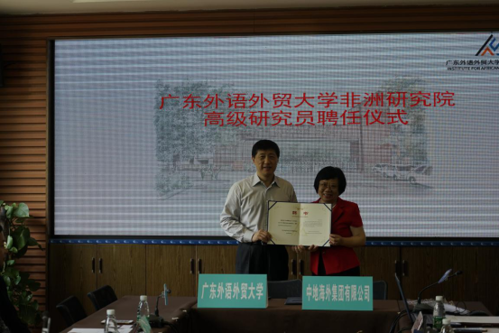Un accord-cadre de coopération stratégique entre Yang Aimin, vice-président de l’Université des Études étrangères du Guangdong et Sun Guoqiang, vice-président de CGCOC Group Co. Ltd a été signé avec succès à Canton. Fu Lang, directeur de l’Institut de recherche sur l’Afrique, Liu Mo, vice-président de Made in Africa Initiative Limited, Liang Zhen, assistant du président de CGCOC Group Co. Ltd, Huang Bo, président de la branche outre-mer de HK de CGCOC Group Co. Ltd et Hou Jianxiong, président directeur général de Shineng Group Co.Ltd étaient présents à la signature. La cérémonie de signature a été présidée par Liu Jisen, directeur exécutif de l’Institut de recherche sur l’Afrique.