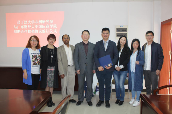L’après-midi du 17 avril, avant le séminaire de l’IRA, Liu Jisen et KEN ont discute de deux aspects pendant une heure :Premièrement,l’IRA de GDUFS et l’IRA de l’Université de Nottingham ont signé un accord de coopération stratégique. Les deux parties ont mené des discussions plus détaillées sur le contenu, y compris constituer conjointement une équipe de recherche pour des études africaines, déclarer conjointement les sujets de coopération internationale, organiser conjointement une conférence académique internationale sur les études africaines et l’échange des enseignants et des étudiants, etc. Deuxièmement, initier conjointement la création de l’Alliance académique mondiale des études africaines.